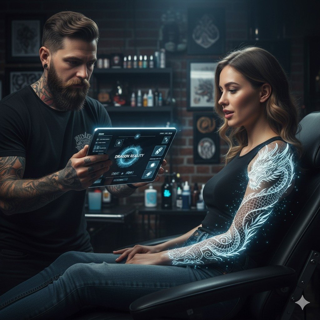 Este servicio permite a los clientes ver su tatuaje proyectado digitalmente sobre su piel antes de realizarlo. Utilizamos tecnología de visualización avanzada que reproduce con precisión la textura, el color y la curvatura de cada zona corporal. De esta manera, puedes decidir con confianza el diseño, tamaño, posición y tono adecuado antes de comprometerte con el tatuador.